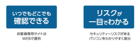 パソコンやネットワーク機器を一元管理 お客様管理サイト上にてパソコンやネットワーク機器の情報を確認することができます。インストール済みソフトウェアやセキュリティ対策状況も確認できますので、どのパソコンにどのソフトウェアがインストールされているかわからないといったお困りごとを解決できます。