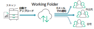 セキュアで大容量クラウドストレージのWorking Folderにより、インターネット環境さえあれば、文書の閲覧・利用がいつでもどこからでも行えます。